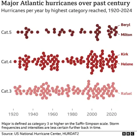 leading to heavier winds and stronger rainfall. In fact, this hurricane almost doubled in wind speed in less than a day. BBC News supports this theory with a graph of how many hurricanes, specifically categories from 3-5, have arisen since 1920. This deadly event across the Caribbean islands may signify that we might have to act against climate change earlier than anticipated to further prevent any future mass casualties.